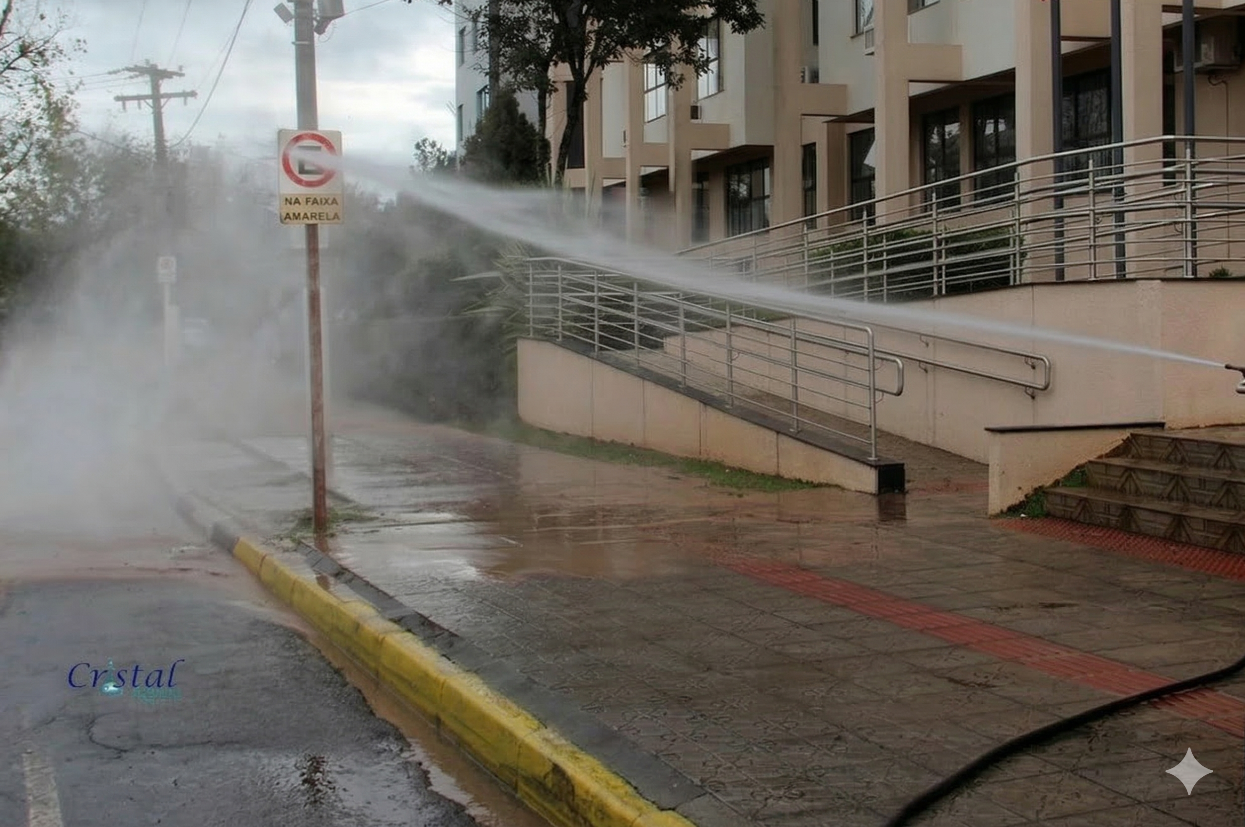 Com jato acoplado ao caminhão, realizamos a lavagem de calçadas, asfaltos e garagens.